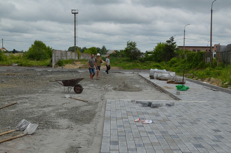 Спеціалісти ПП “МП Нововолинськсантехмонтаж” займаються благоустроєм прилеглої території, викладанням бруківки на території майбутніх місць паркування автотранспорту.