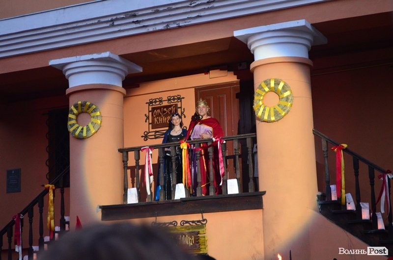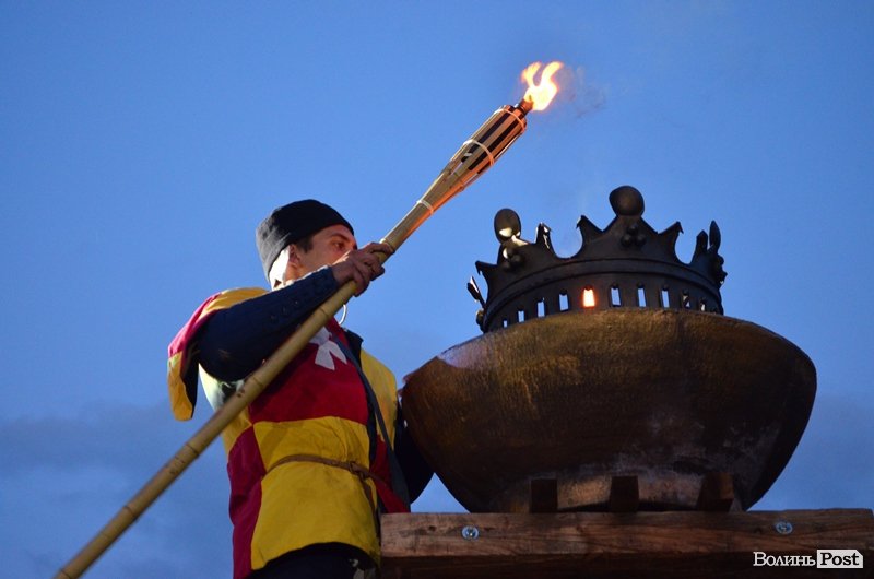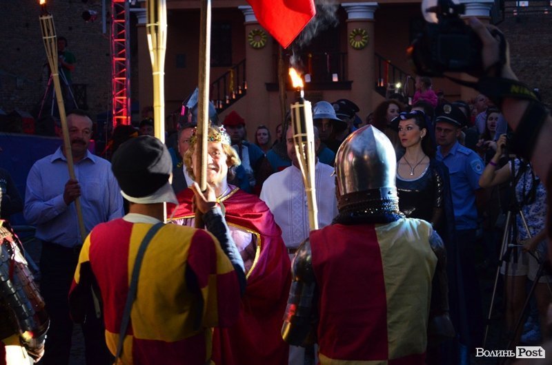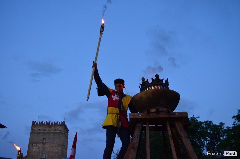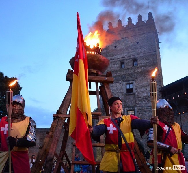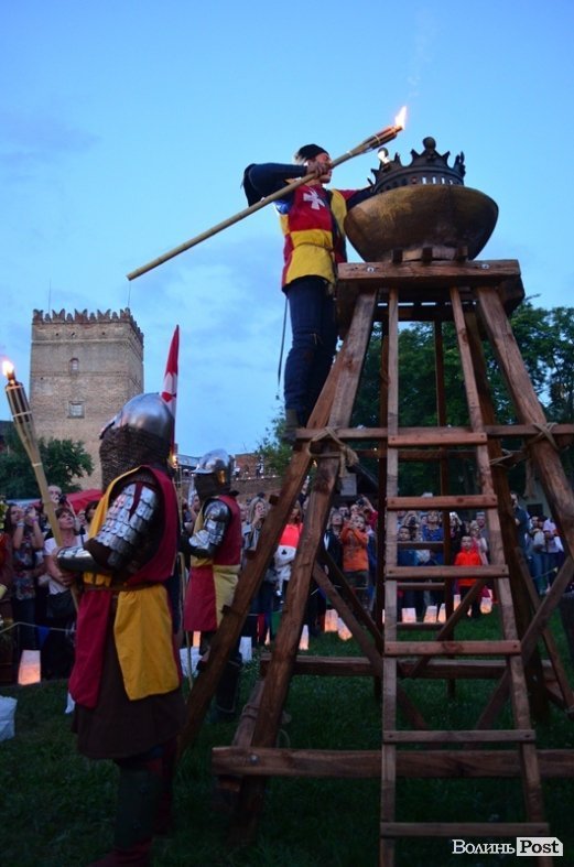 Міський голова Микола Романюк за традицією побажав лучанам та гостям гарно розважитися. Представники влади передали рицарям смолоскипи з вогнем. Далі чоловіки в обладунках підпалили вогонь у короні, який палатиме до ранку.