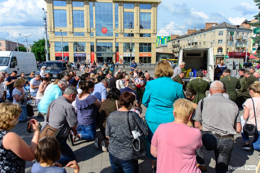 Зустріти траурний кортеж із тілом воїна-земляка приїхали побратими, волонтери, священники. На Театральний майдан прийшли представники міської та обласної влади. Люди зустрічали полеглого волинянина на колінах, несли квіти.