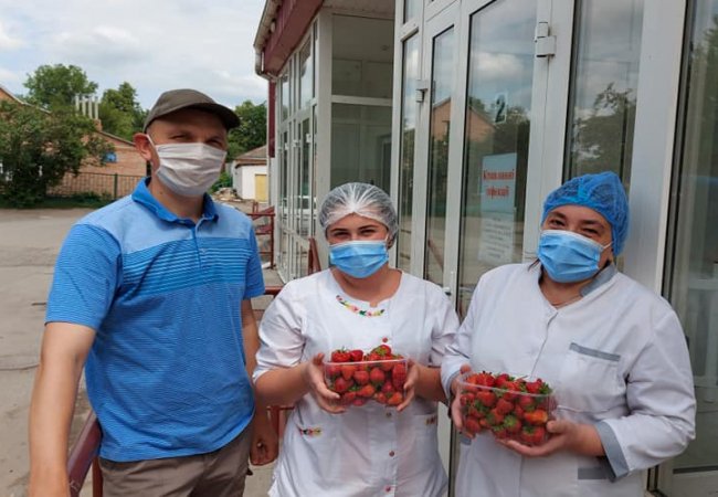 Підприємець Віктор Дадак, який займається вирощуванням полуниці, у День медичного працівника вирішив пригостити ягодами медпрацівників Волинської обласної інфекційної лікарні.