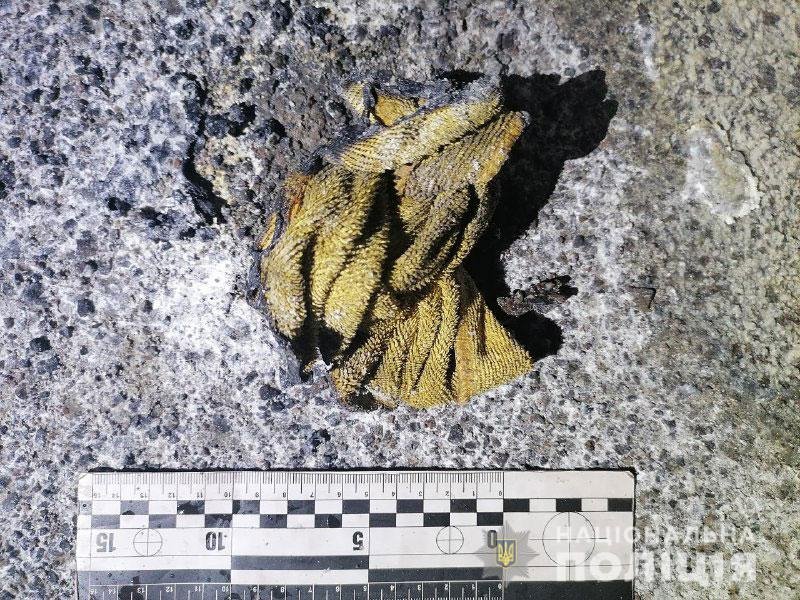 Із місця події криміналісти вилучили фрагмент ганчірки та обгорілу пластмасову ємність із залишками паливно-мастильних матеріалів.