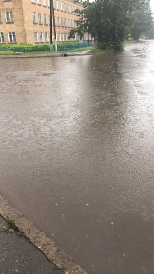 На світлинах видно, що на вулицях Ратного утворилися величезні калюжі та навіть невеличке "озерце" на виїзді з пожежної частини.