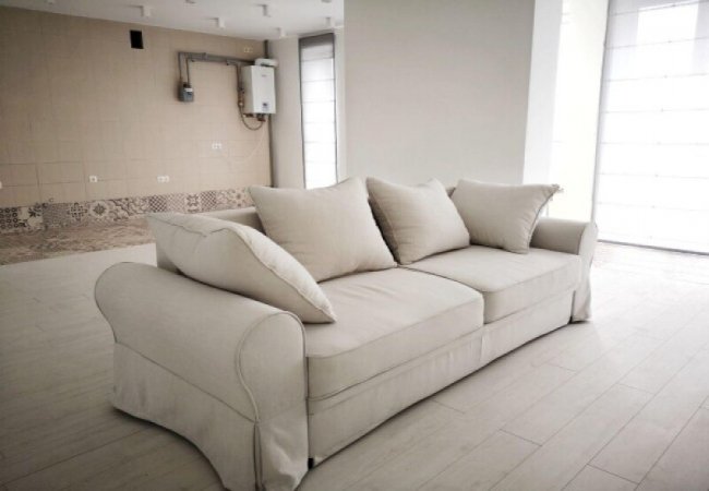 - Квартира має простору об'єднану вітальню та кухню (55 м2). Така площа кімнати - як уся 2-кімната квартира типового радянського планування.