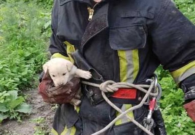 Бійці ДСНС за допомогою спеціального обладнання спустились на глибину 25 метрів та підняли тваринку на поверхню.