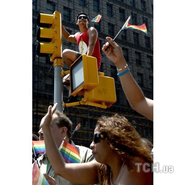 У Нью-Йорку відбувся 44-ий гей-парад, учасники якого несли український та білоруський державні прапори.