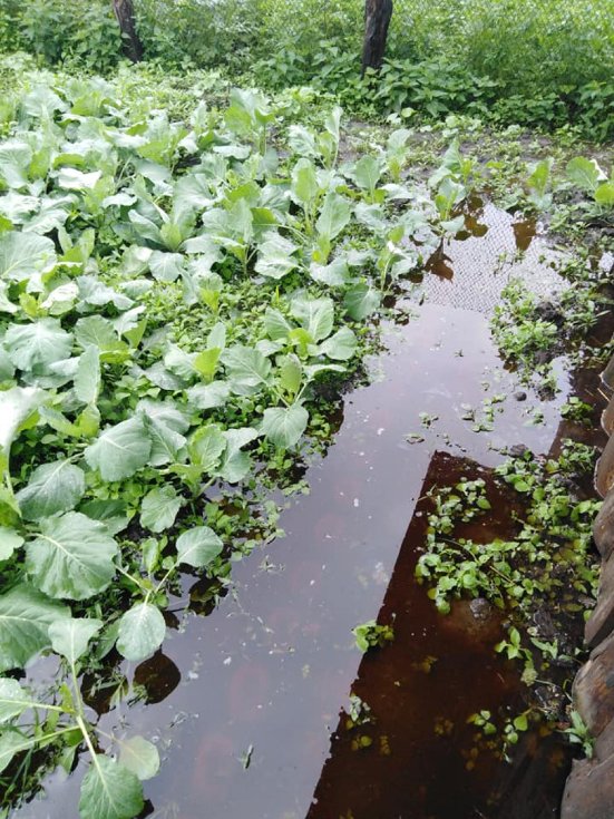 У подвір'ях місцевих мешканців також опинилося чимало води, яку ті намагаються спускати й у так повні меліоративні рови, або ж відкачують мініпомпами.