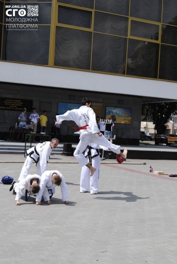 Глядачам влаштували показові виступи Волинської федерації рукопашного бою "Рубіж", Луцької школи "Капоейра", акробатичної команди TWIST, школи ТАЕКВОН-ДО, студії східного танцю, - повідомили у СГО "Молодіжна платформа".