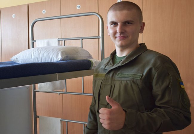 «Це у розмовах і в анекдотах армія виглядає як страшний сон. Насправді ж все зовсім не так. Умови для проходження служби тут комфортні. Годують у частині смачно (в обід із запропонованих страв я обрав гороховий суп, вівсяну кашу з тушкованим м’ясом і салат). Форму видали по розміру. Приміщення світлі, просторі, скрізь зроблений сучасний ремонт. Вважаю, що кожен справжній чоловік має відслужити. Саме тому і я тут», - каже Петро Волинський.