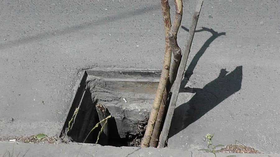 Чоловіки, які приймають пляшки, розповідають, що з дірки, яка мала б бути прикритою люком, вже давно стирчать гілки дерев, аби люди хоч якось знали про небезпечну точку.
