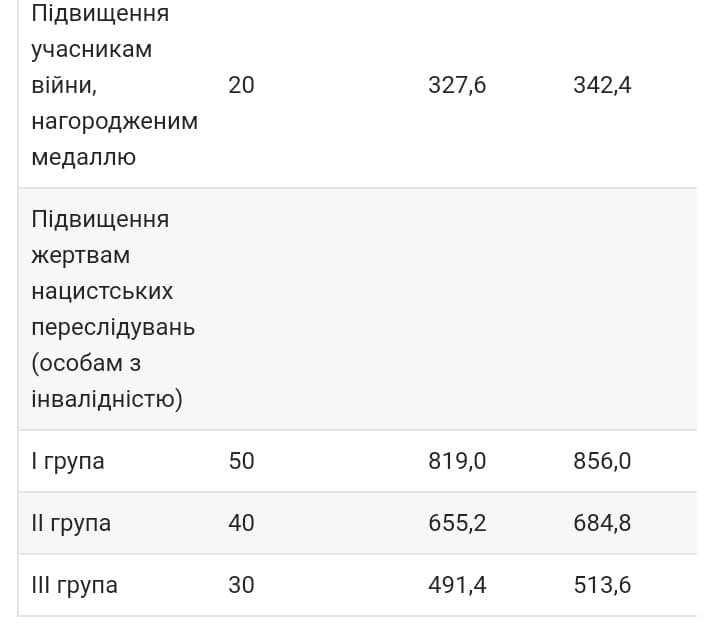 Незалежно від того, працює особа, чи ні, збільшаться розміри встановлених до пенсій надбавок, підвищень, пенсій за особливі заслуги перед Україною, інших доплат, які базуються на величині прожиткового мінімуму.