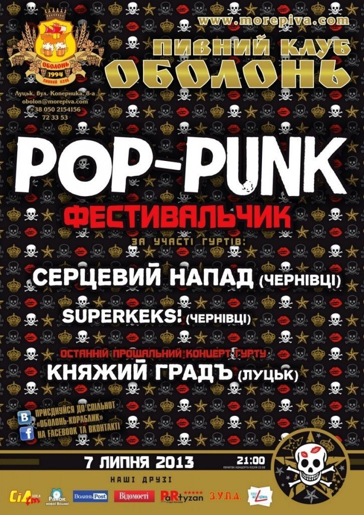 Під час "Pop-Punk Фестивальчику" вони поділять сцену з чернівецькими формаціями "Серцевий напад" та "Superkeks!", - повідомили в СГО "Молодіжна платформа".