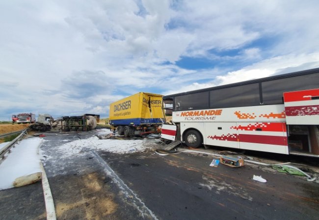 Як інформувало агентство, автокатастрофа сталася на дорозі національного значення №1, яку перероблено під стандарти автомагістралі, близько 15-ї години за київським часом. За інформацією польських ЗМІ, постраждали загалом 32 особи. В результаті зіткнення вантажівки загорілися. На місце події вилетіли чотири рятувальні гелікоптери та виїхали автомобілі швидкої допомоги. Одна з вантажівок згоріла повністю. Вона перевозила небезпечну субстанцію.