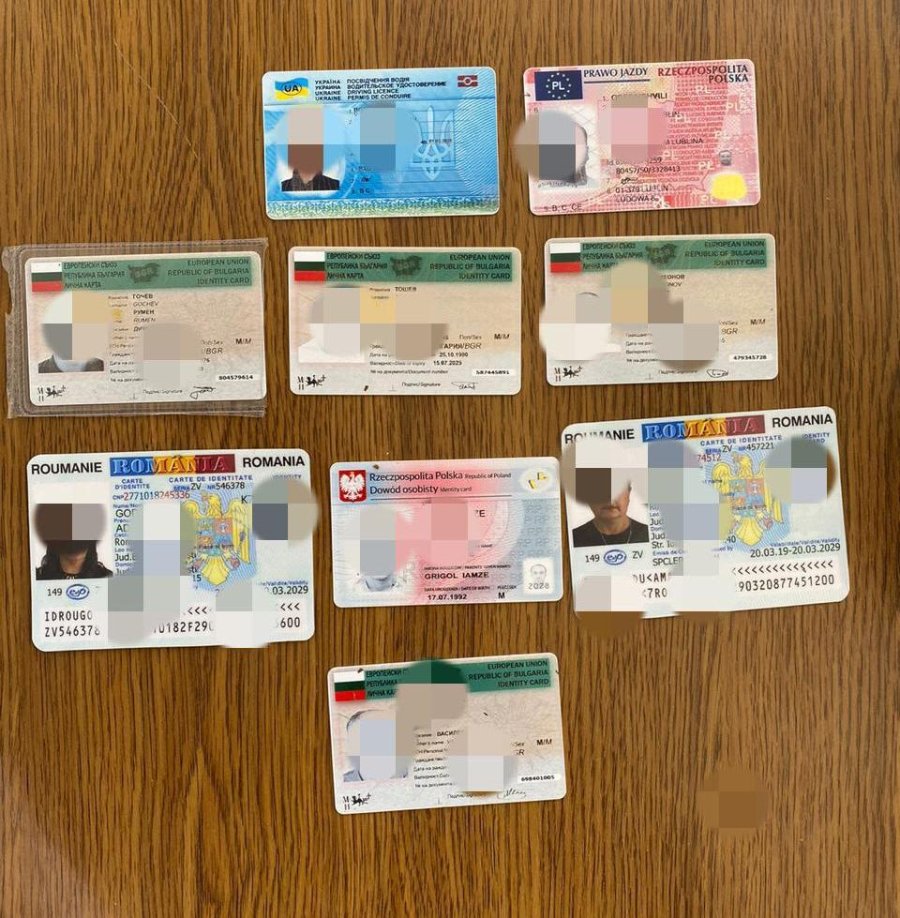 В одного з них під час паспортного контролю прикордонники виявили стос фальшивих документів – 7 болгарських, румунських та польських ID-карток та 2 водійських посвідчення польського та українського зразків. Усі виявлені документи виготовлені на різні установчі дані та підроблені.