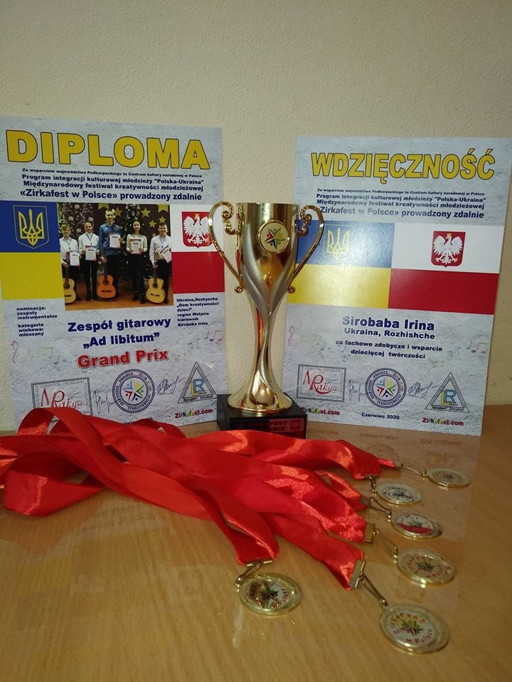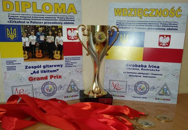 Володарями високих нагород стали гітаристи із ансамблю "Ad libitum"» під керівництвом Ірини Сіробаби. Юні музиканти показали блискучі результати у Міжнародному дистанційному фестивалі-конкурсі мистецтв «Zirkafest w Polsce».