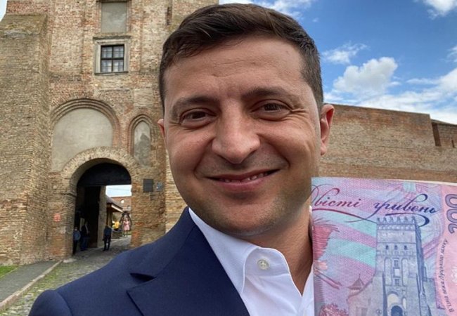 Президент України Володимир Зеленський у Луцьку сфотографувався з купюрою номіналом 200 гривень, на якій зображена в'їзна вежа замку Любарта.