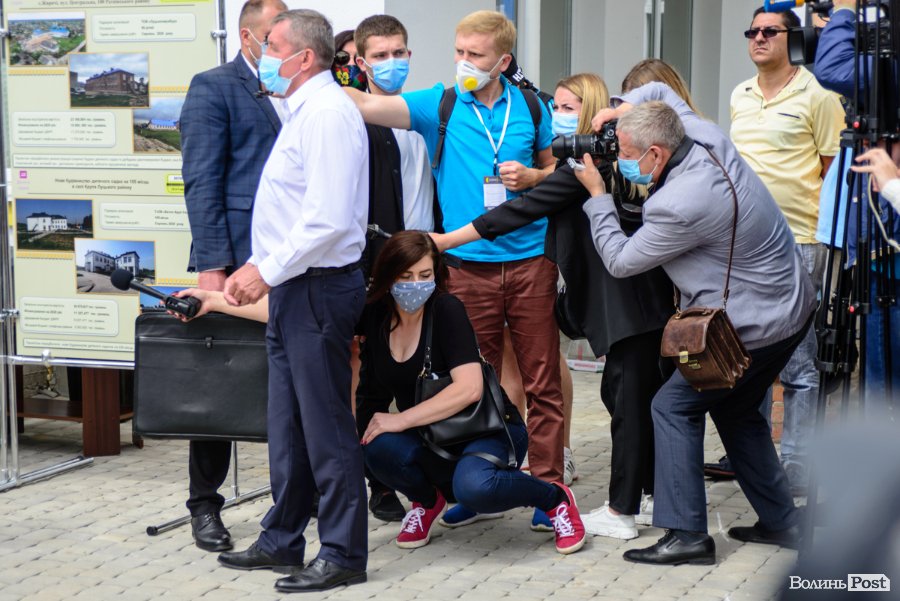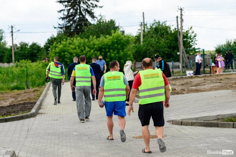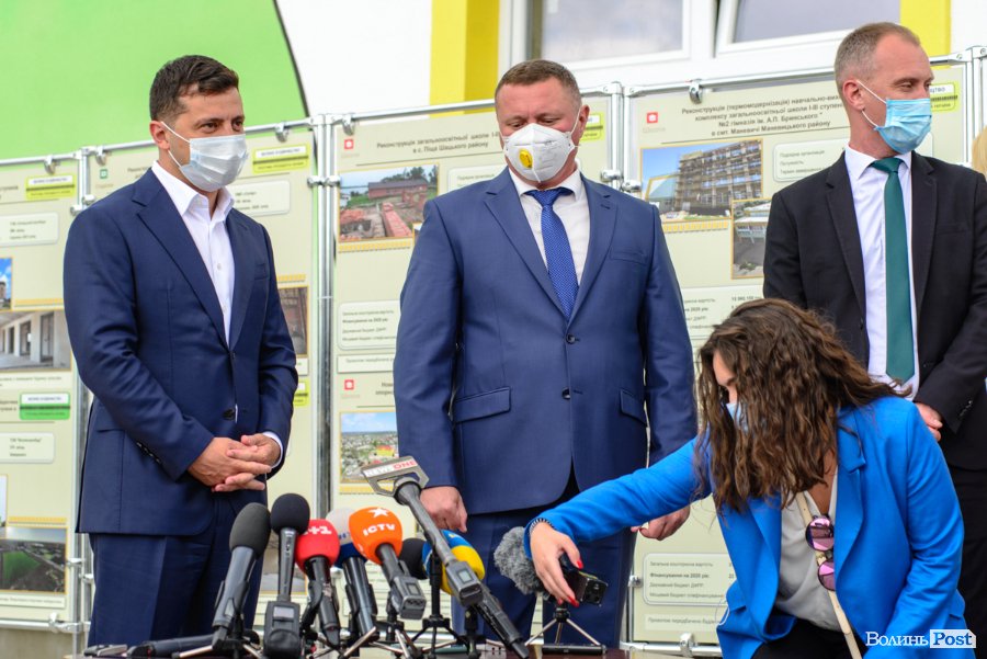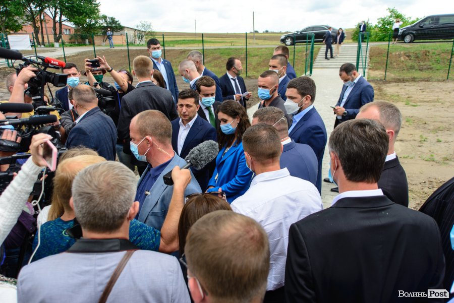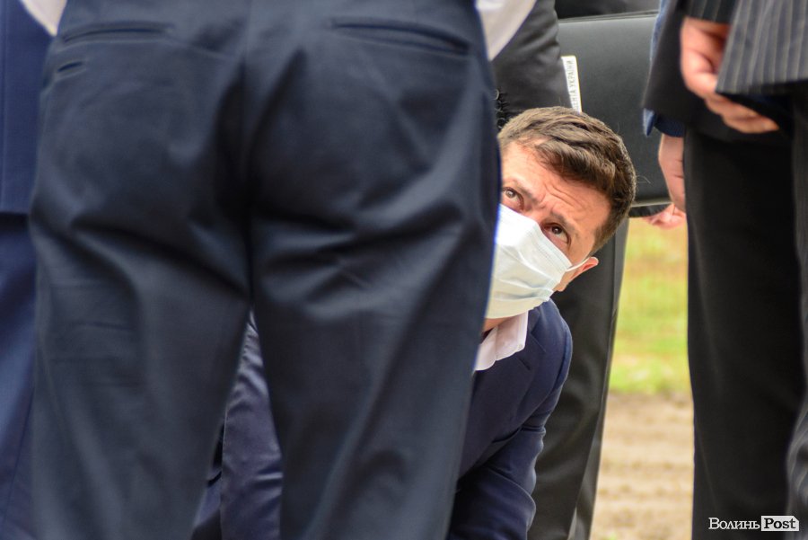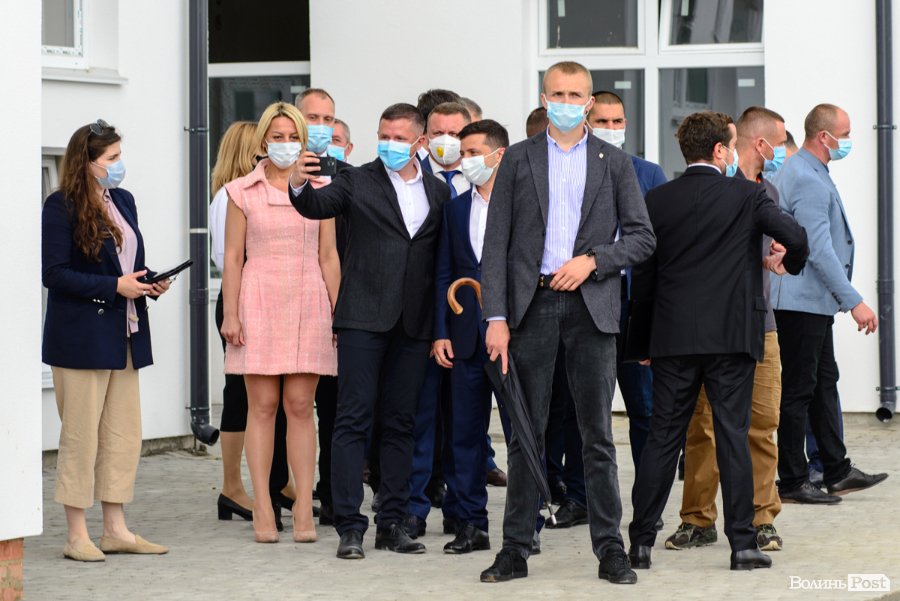 Поки президент оглядав будівництво чи не першого за часів незалежності зведеного «з нуля» дошкільного навчального закладу на Волині, місцеві поділилися на два табори – тих, хто байдуже проходив повз, і тих, хто неподалік чекав бодай миті, щоб перекинутися словом із Зеленським чи зробити селфі на пам'ять.