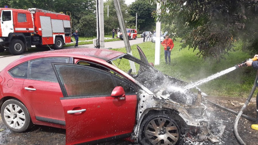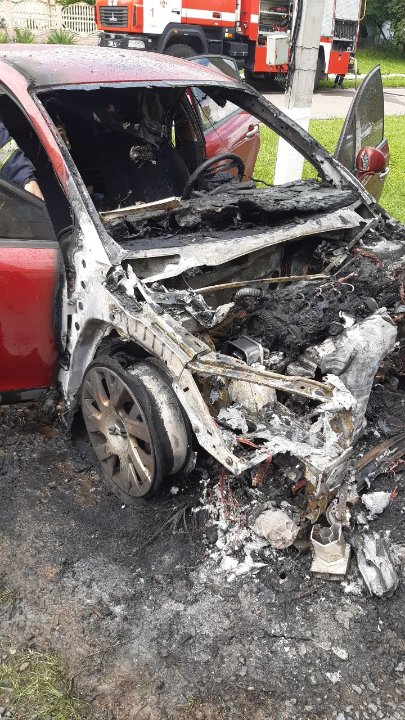 Травмованих та загиблих немає. Вогонь знищив колеса, відсік двигуна, лобове скло та внутрішню панель.