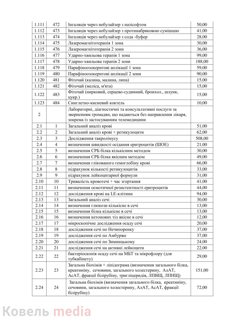 Виконавчий комітет Ковельської міської ради затвердив нові тарифи на послуги, які надають у Ковельському міськрайонному територіальному медичному об’єднанні.