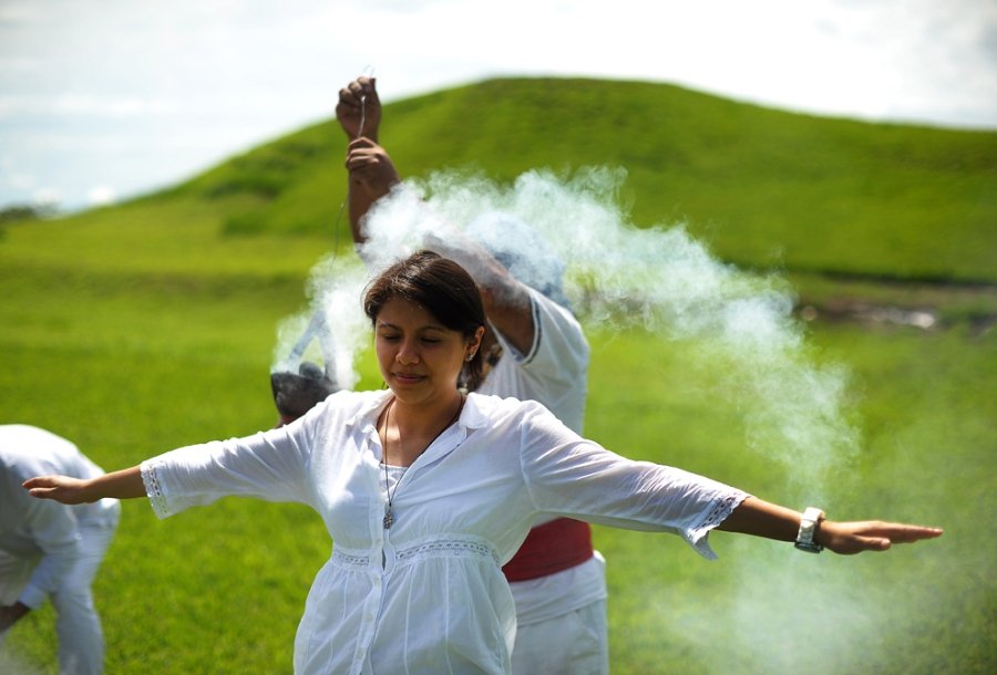 Жінка готова взяти участь у церемонії святкування літнього сонцестояння (Сан-Андреський археологічний парк, Сальвадор)