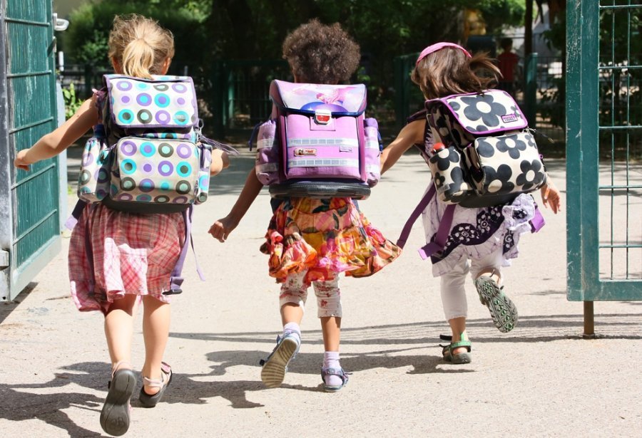 Три школярки поспішають до школи. Німецькі школи першими в Європі закриються на літні канікули (Берлін, Німеччина)