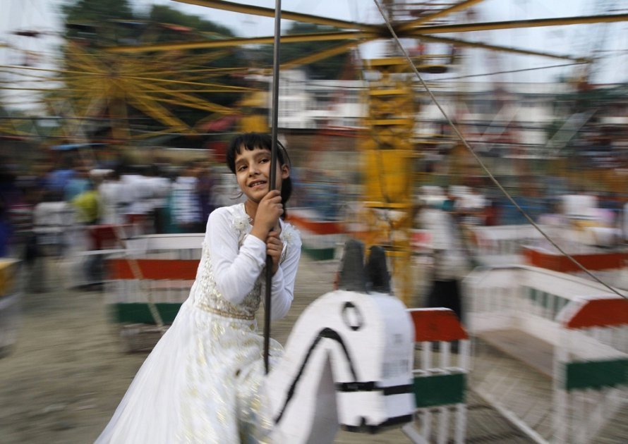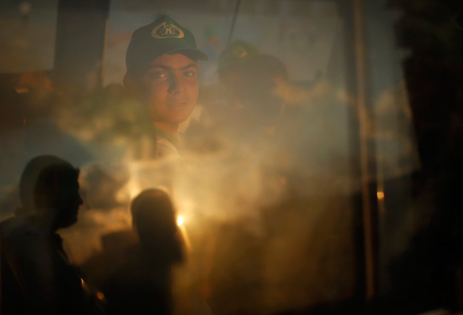 Палестинський хлопчик Махмуд Ханія, дивиться з вікна автобуса. Він залишає літній табір, організованому рухом ХАМАС у місті Газа (Палестинська автономія)
