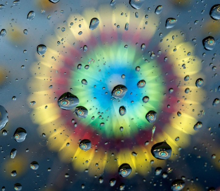 Колесо огляду, яке відображене в краплі дощу на склі автомобіля під час шторму 26 червня (Браянтсвіл, США)