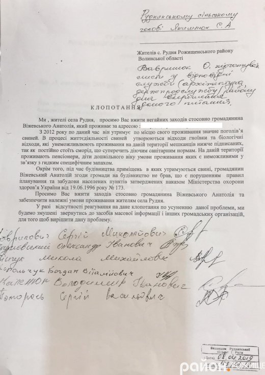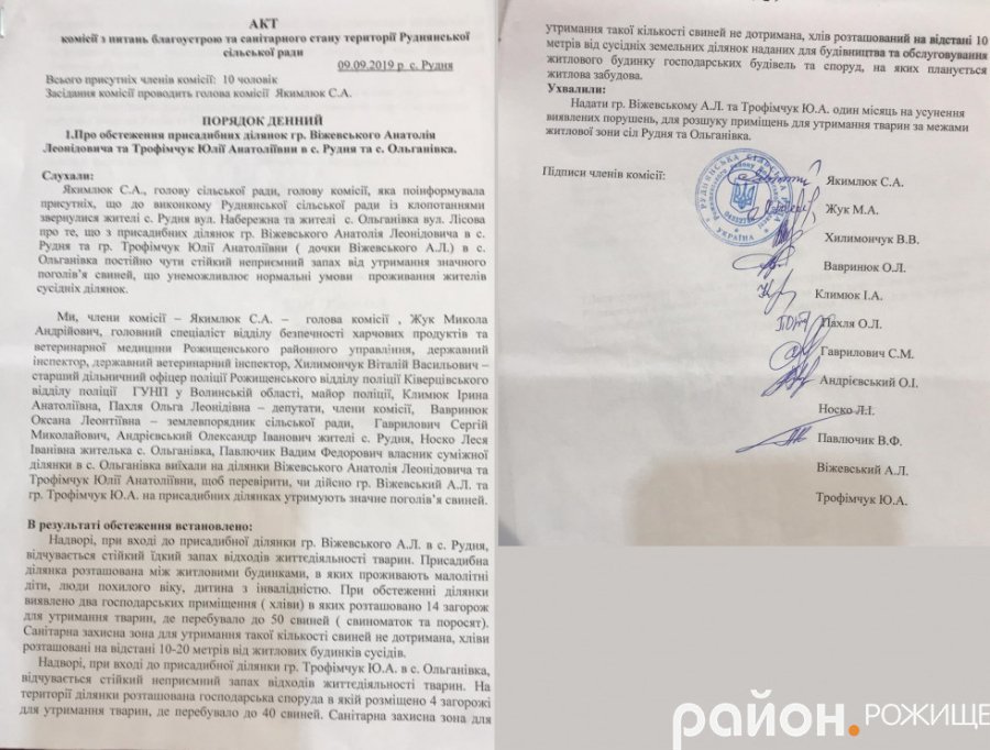 «Санітарна захисна зона для утримання такої кількості свиней не дотримана, хліви розташовані на відстані 10-20 метрів від житлових будинків сусідів», – йдеться у акті комісії від 9 вересня 2019 року.