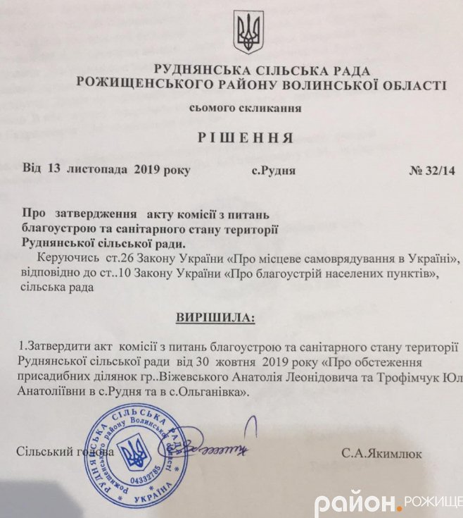 Тоді комісія з питань благоустрою та санітарного стану території Руднянської сільської ради на чолі з головою комісії, головою сільської ради Світланою Якимлюк провела обстеження присадибної ділянки Анатолія Віжевського, на якого скаржилися сусіди.