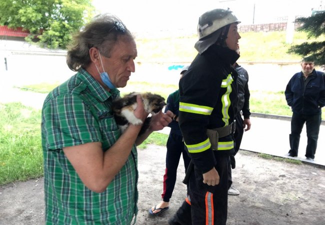 Співробітники ДСНС встановили, що кіт знаходиться на висоті 4 метри. За допомогою драбини рятувальники піднялись на ялину, змогли дістати кошеня і спустити його на землю.