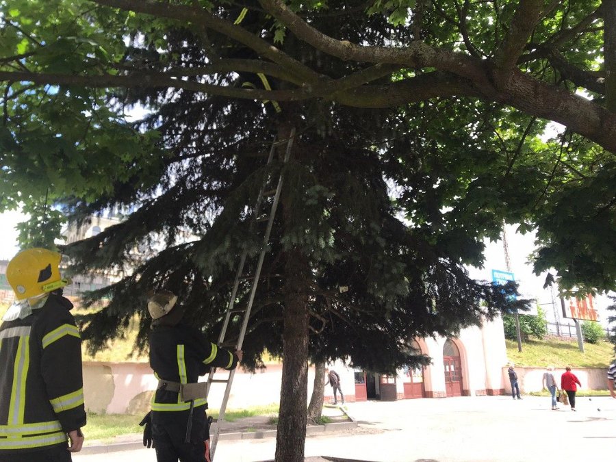 Сьогодні, 13 липня, до Служби порятунку «101» надійшло повідомлення про те, що на Привокзальній площі у місті Ковелі на верхівці ялинки опинилось кошеня і не може звідти самотужки злізти.