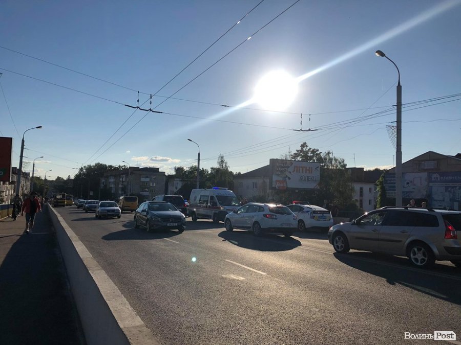 У Луцьку на мосту, який з'єднує проспекти Соборності та Перемоги, трапилася аварія за участю мотоцикліста та маршрутного таксі №3.