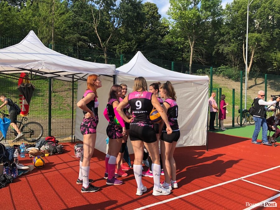 Паралельно на іншій частині поля до поєдинку готувалися волейболісти і гравці у бадмінтон.