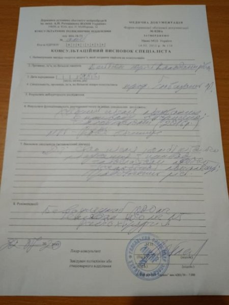 Повторна операція неможлива. Потрібне дороговартісне лікування (Авастин 92 000 грн., потім Темодал 23 000 грн та курс опромінення в інституті нейрохірургії ім. акад. А. П. Рамаданова в м. Києві). Ця сума є непідйомною для нашої сім'ї (троє діток віком 14, 12 та 4,5 роки. Молодша донька дитина-інвалід підгрупи А з діагнозом синдром Дауна)", - йдеться у дописі.