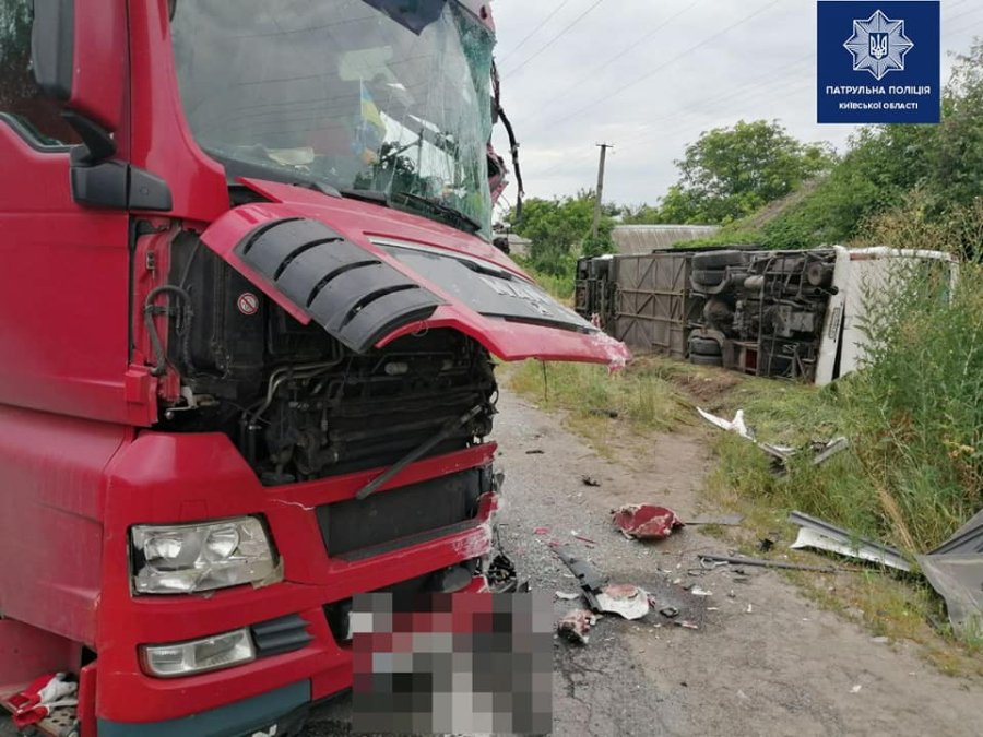 У Київській області в селі Семиполки зіткнулися автобус, вантажівка і легковик. У результаті ДТП є загиблий і травмовані.