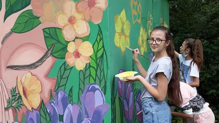 Для будиночка вибрали ескіз із суто волинською тематикою - лісова Мавка та квіти. Малюють уже три дні, з 9-ої ранку та до шостої вечора. "Роботу ускладнює палюче сонце та комарі", - розповіла Алла Жупанюк.