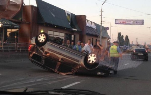 Аварія за участю двох автомобілів трапилася 6 липня близько 5:00 у Києві на «Петрівці» біля «Макдональдсу».