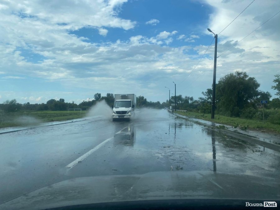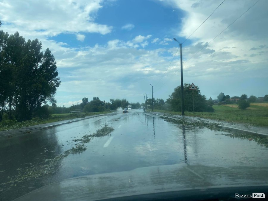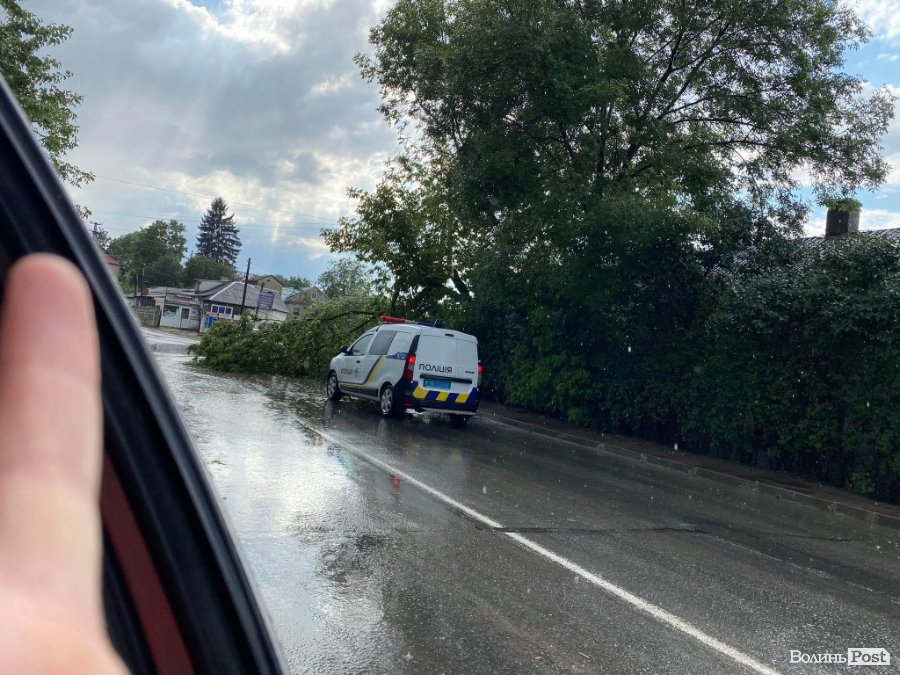 У Горохівському районі і в самому місті Горохів вирувала негода. Почалась сильна гроза зі шквальними поривами вітру, внаслідок чого утворились величезні калюжі, а деякі дерева повалились на дороги.