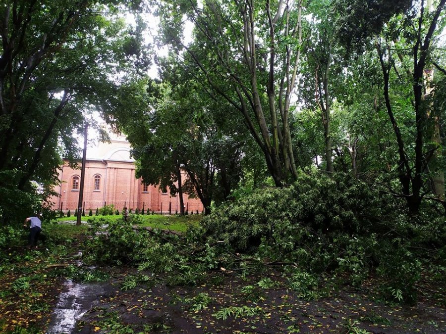 Мешканці розповідають, що буревій повалив дерева на деяких вулицях, пошкодив лінії електропередач. І навіть у деяких будівлях позривало дахи.