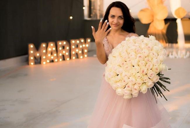 Дівчина Ілона думала, що їде на фотосесію нової колекції суконь. Однак була дуже здивована, коли побачила свого коханого з букетом та каблучкою. Вона сказала: "Так!"