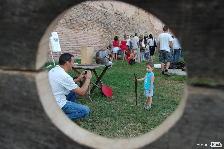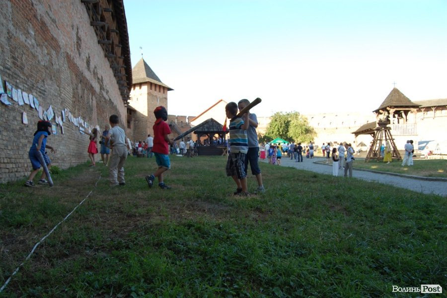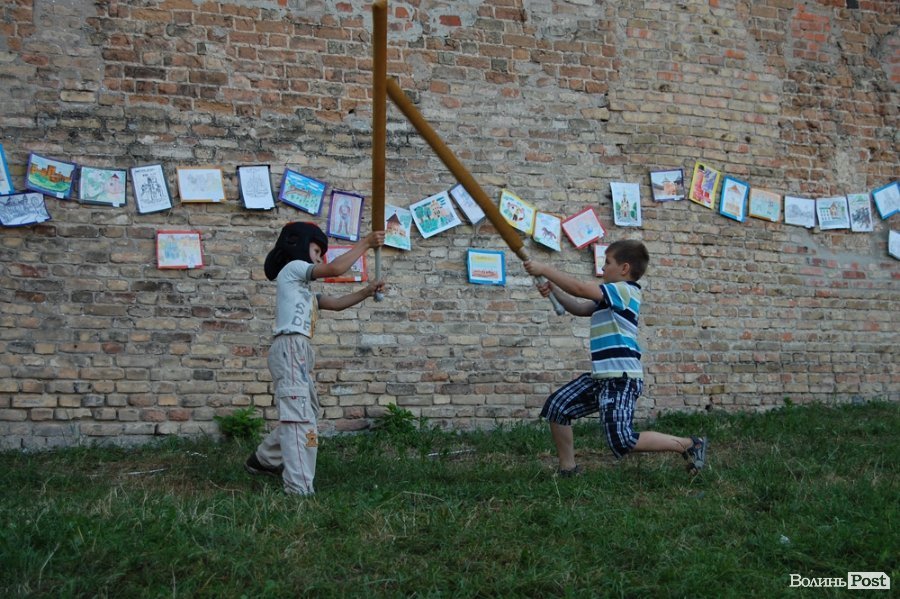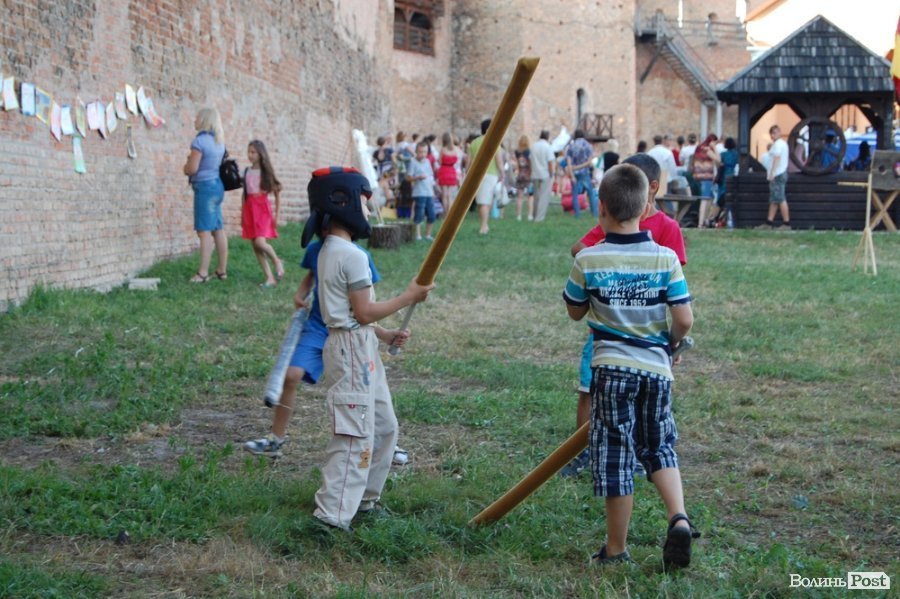 Так, лицарі з історичних клубів реконструкції влаштували показові бої, після чого вчили дітей вправлятися з мечами, які, щоправда, замінили на макети.