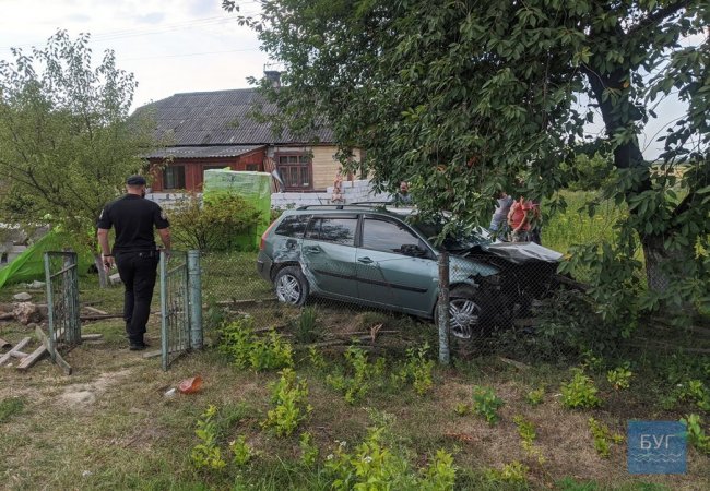 На Волині зіткнулися два легковики: від удару одне авто відкинуло на приватне подвір'я. ФОТО