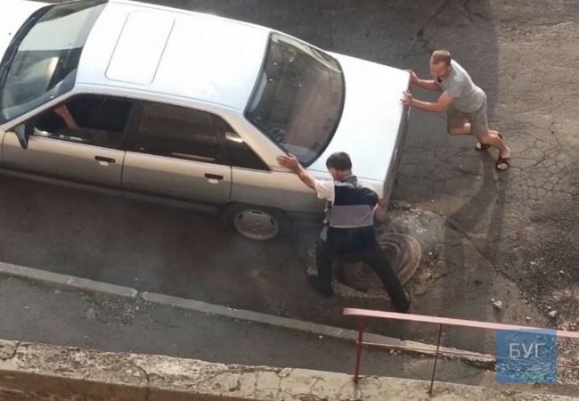 “Коли машина наїхала на люк, він перевернувся, водій не зміг далі рухатися. Довелося поставити люк на місце”, – розповідають очевидці.
