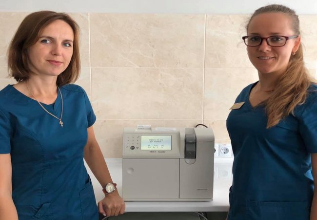 Благодійний Фонд «Свічадо» презентував для медзакладу автоматичний газовий аналізатор Medica Easy Stat, що дає змогу надточно визначати рівень газів та електролітів крові немовлят.