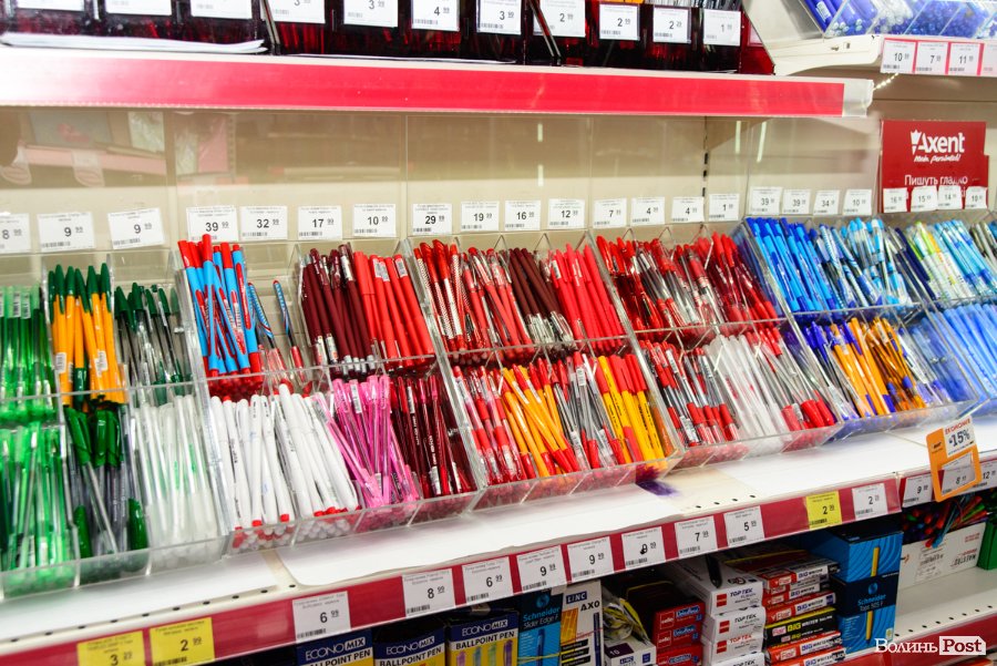 Керуючий магазином «Офіс Центр» у Луцьку Олег Кобилинський каже, що це – найкраща можливість закупитися перед школою або ж облаштувати офіс усім необхідним, вибір товару – широченний: від ручок, олівців і рюкзаків, до дизайнерських столів і сувенірної продукції.