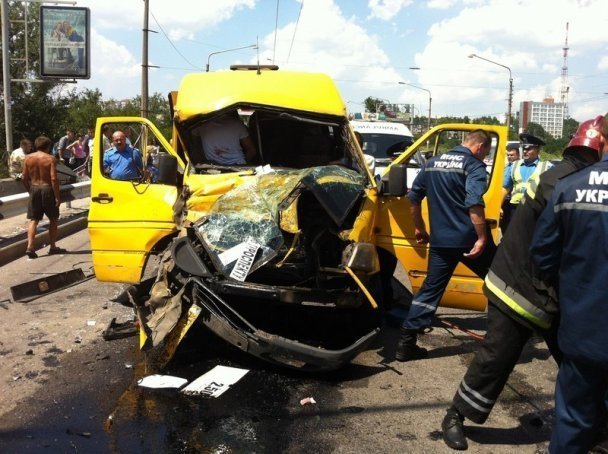 У результаті зіткнення передня частина маршрутки деформувалася, і рятувальникам довелося вирізати частину кузова для того, щоб дістатися до пасажирів.