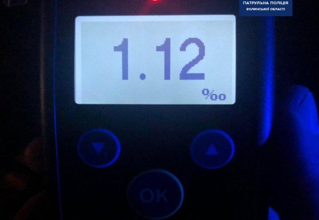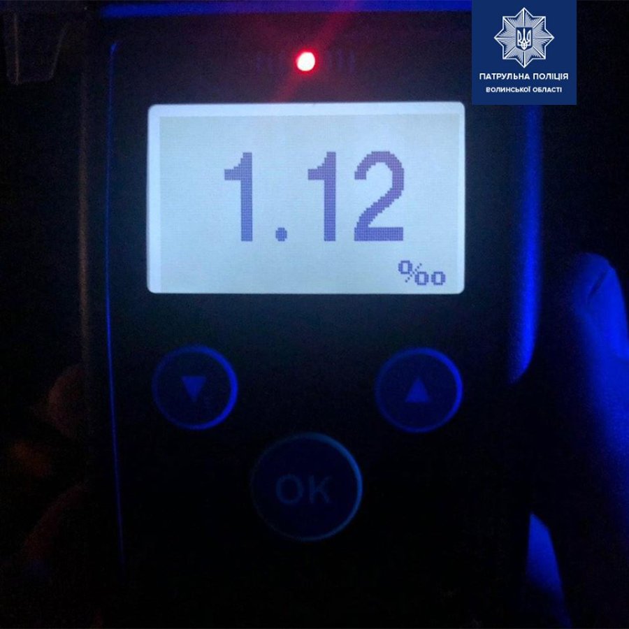 Патрульні зупинили авто і під час спілкування із водієм, виявили в нього ознаки алкогольного сп'яніння. Він пройшов огляд на місці. Результат – 1,12 проміле.