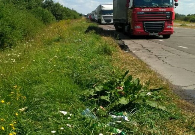 Цю ділянку дороги прибирають після того, як черга з автомобілів зникає. Зазвичай на це у Служби автомобільних доріг є 2-3 дні, бо у суботу-неділю черга знову утворюється, - каже Юрій Ришкевич. У компетенції служби облаштовувати смітники лише на автобусних зупинках.