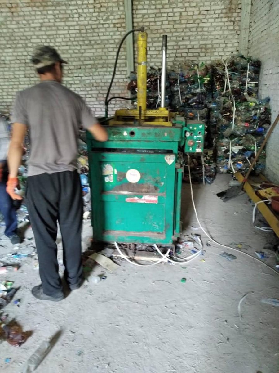 Потім на пресі, який закупила громада і передала підприємству, пакують у квадратні тюки й складують.