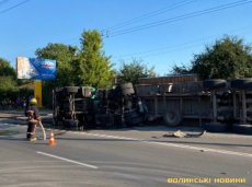 У Луцьку на вулиці Ковельській перевернулась вантажівка з зерном. Внаслідок аварії постраждав водій.