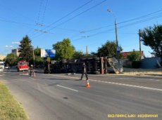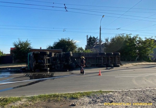 Зі слів очевидців, водій тягача з причепом наповненим зерном рухався вулицею Ковельською, проте, ймовірно, не розрахував безпечну швидкість. У результаті чого автомобіль перевернувся.